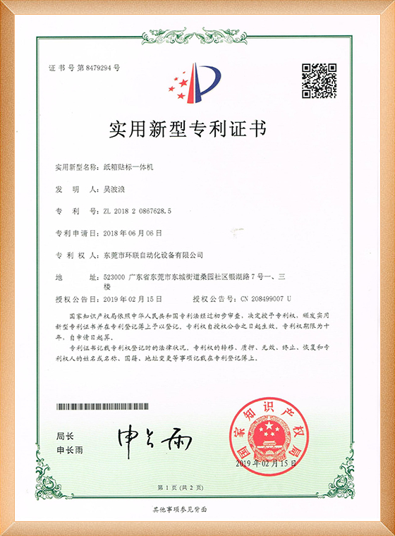 24.纸箱贴标一体机 -证书_001
