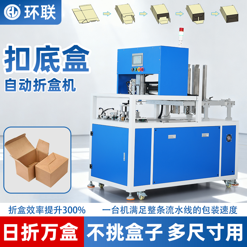 自动开盒机:环联的扣底开盒机可作为整线的一部分,实现纸盒自动展开,为装盒环节提供稳定的供盒基础。